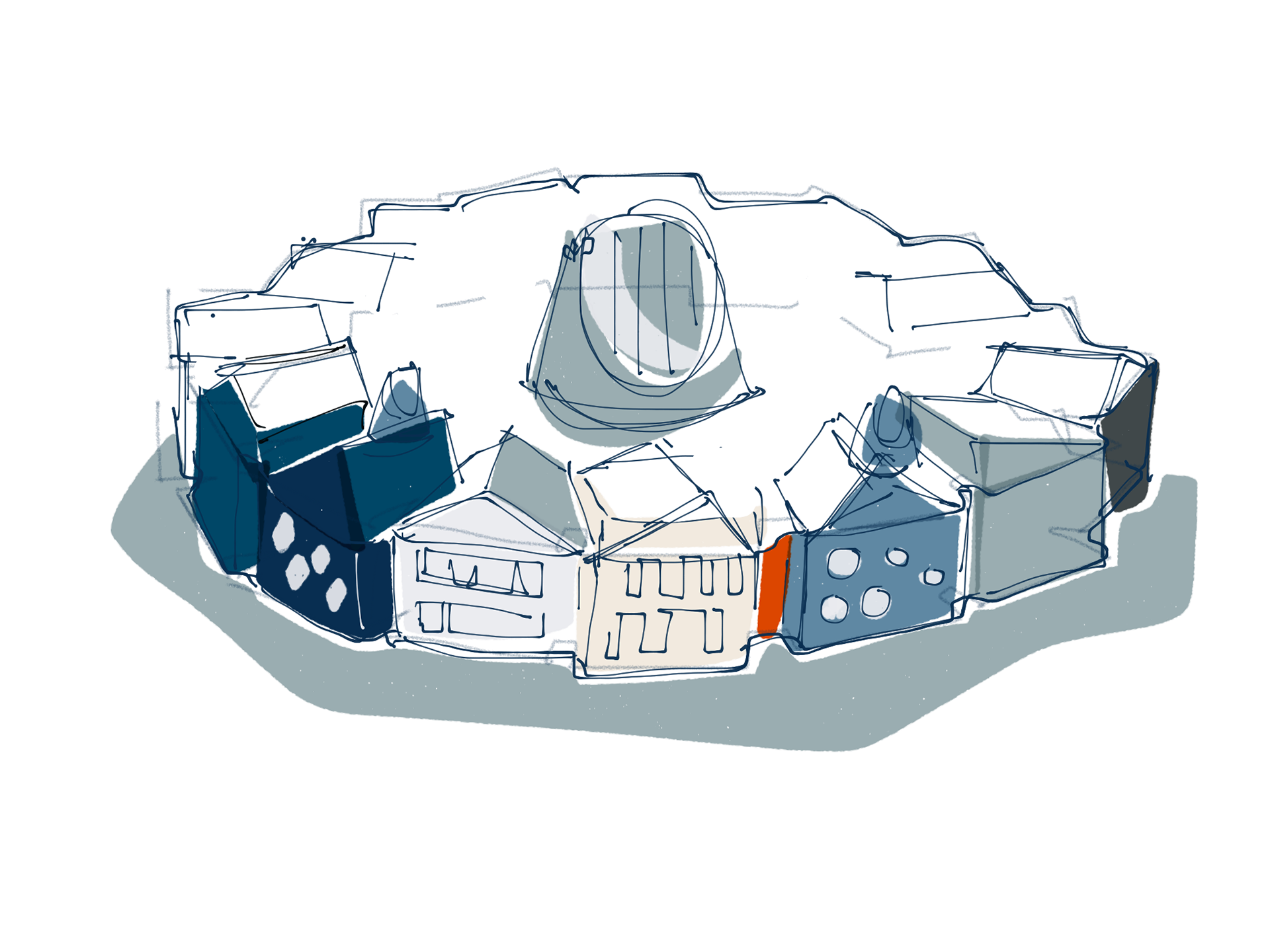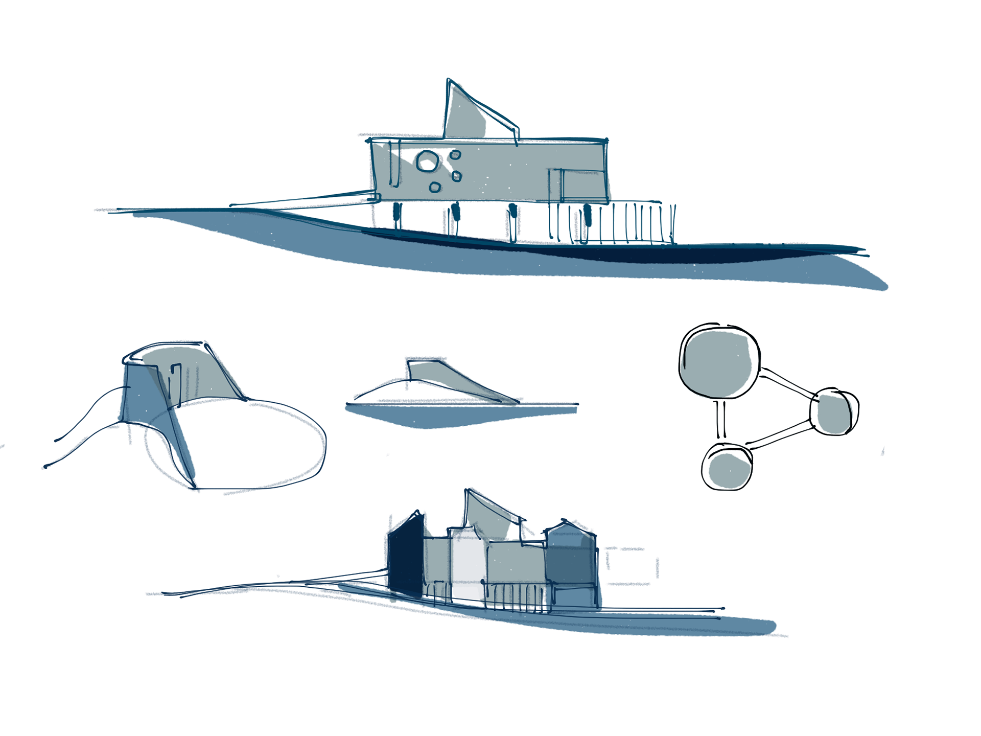 A project, big or small, generates a stream of drawings, diagrams, collages and schemes, they are moments of exploration that hold value in themselves.