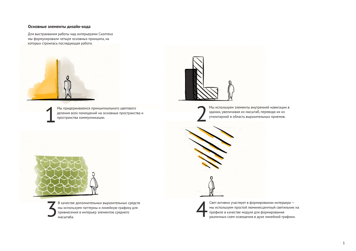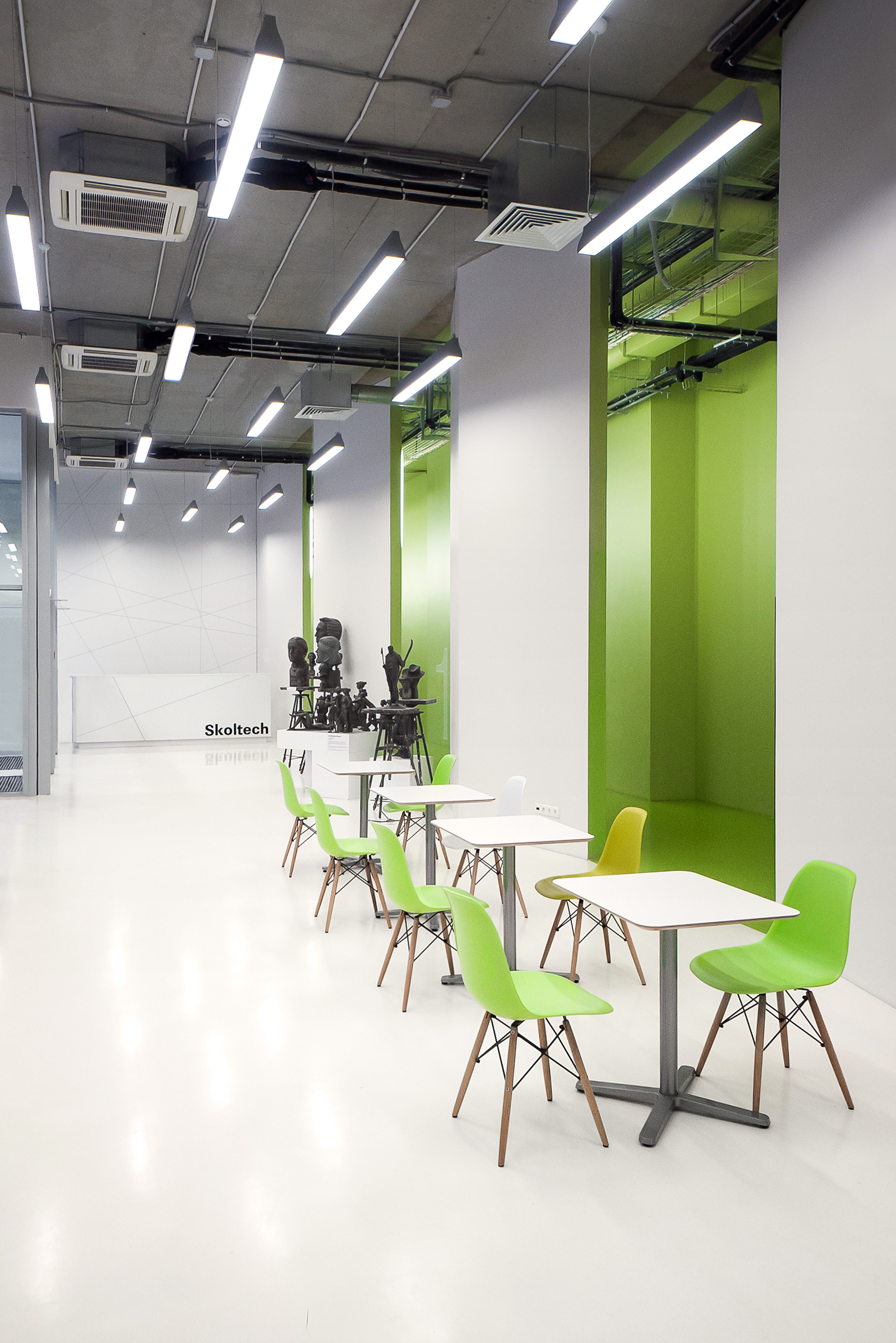 The design set out a few simple rules that could be applied across different spaces, making the project quick to execute and flexible enough to adapt as Skoltech’s layout kept evolving from day one.